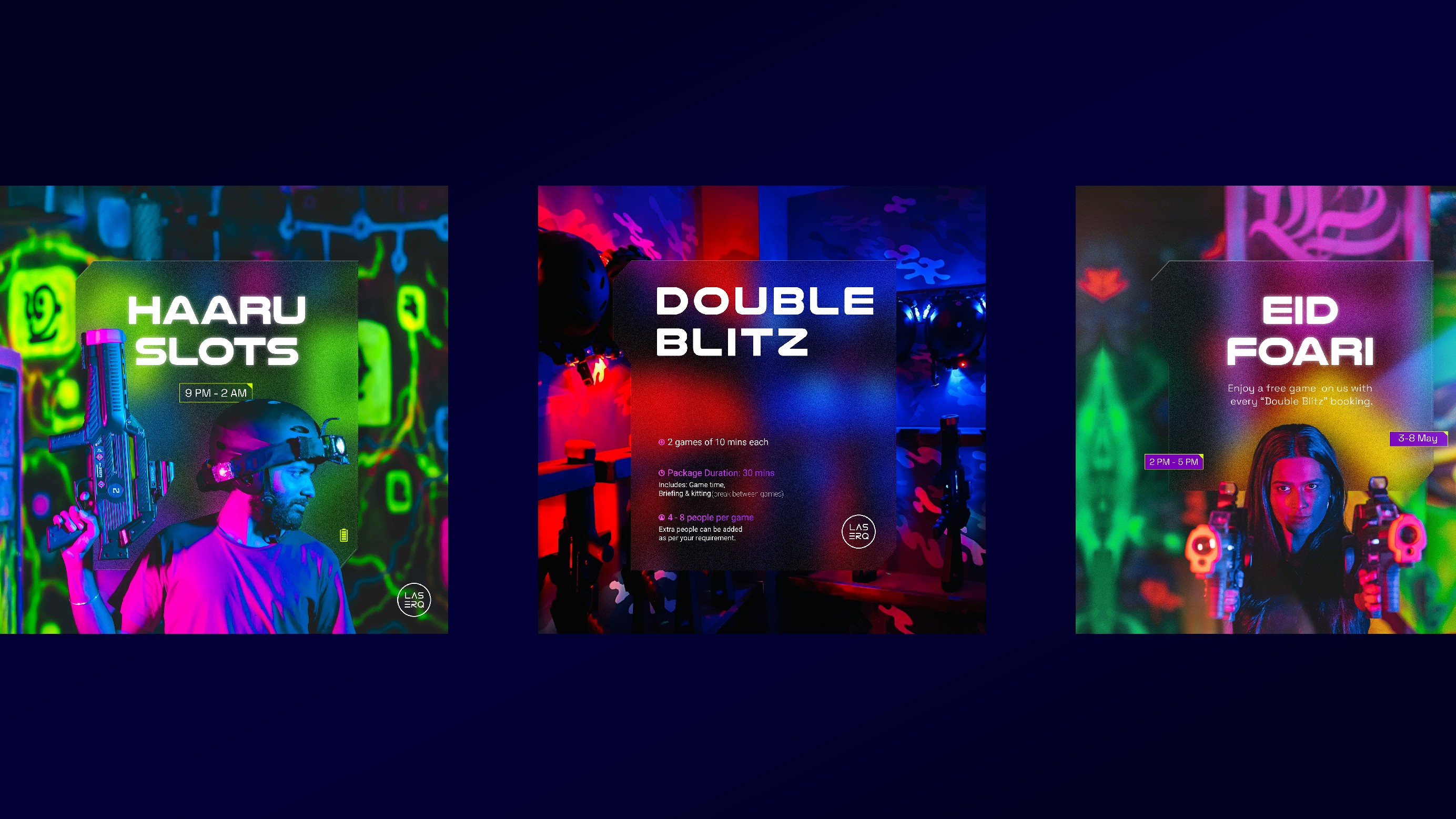 With the launch of the Maldives' first laser tag arena, there was a need to create a distinct brand that would resonate with the target audience of thrill-seeking individuals, families, and groups looking for an action-packed experience. The branding of the laser tag arena aimed to convey excitement, competition, and a sense of adventure while capturing the essence of the local delight and authenticity.