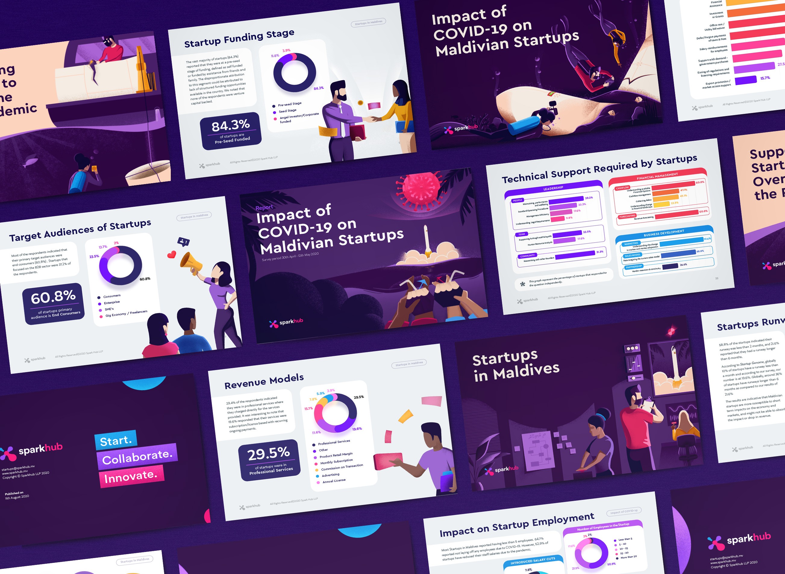 By strategically crafting a brand identity that captures the essence of the Maldives' startup culture, Sparkhub can establish itself as a trusted and influential organization within the local startup ecosystem. The cohesive branding, visual elements, and messaging will help attract and engage entrepreneurs, investors, and industry professionals, contributing to the growth and success of the startup community in the Maldives.
